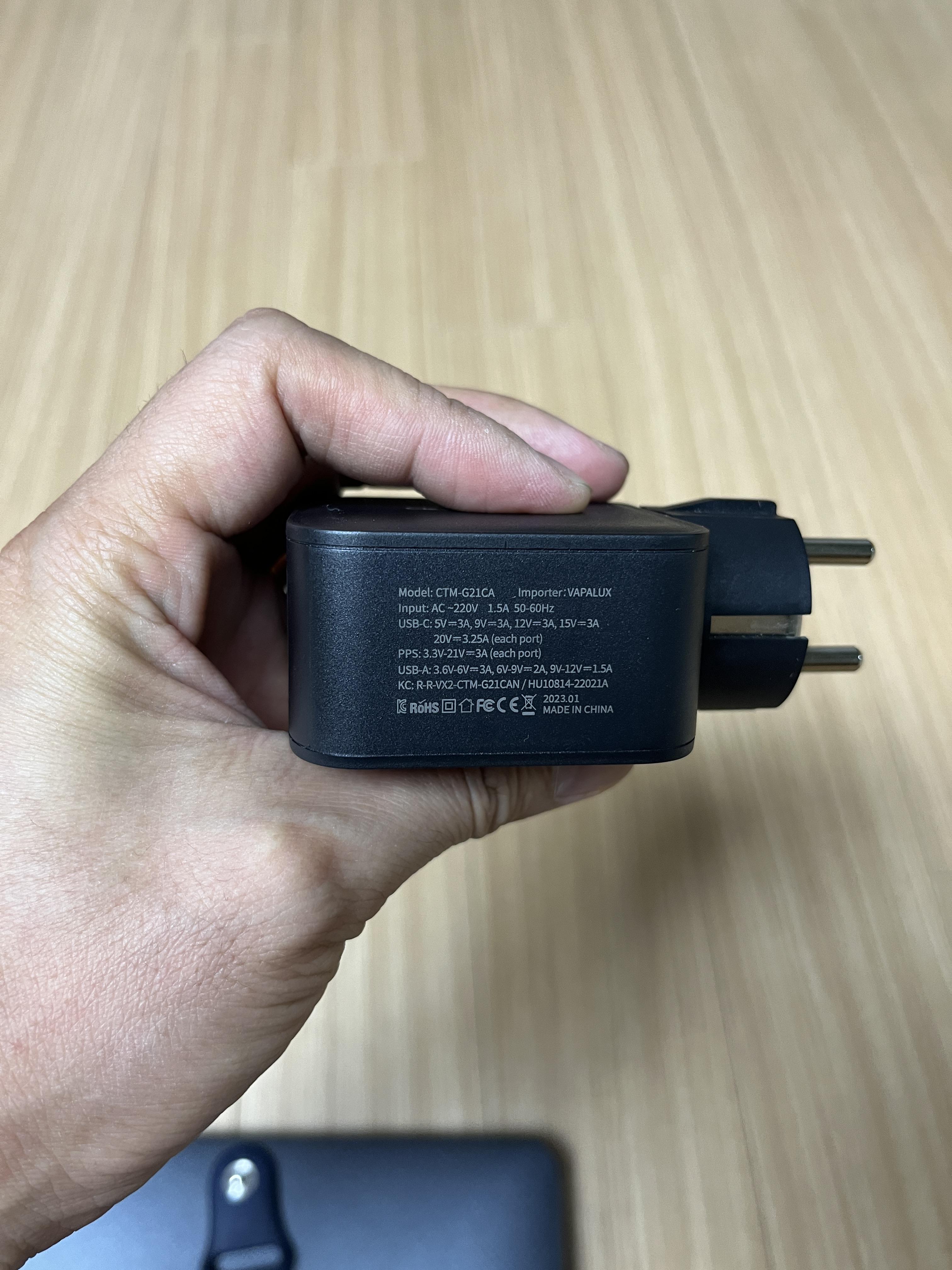 이 작은 게 무려 75w고요. 포트도 3개나 있어서 저에게 아주 깔맞춤이었습니다. 그리고 접지도 포함되어 있어서 충전하면서 맥북을 사용할 때 정전기가 일어나지도 않고 너무 좋았습니다.
