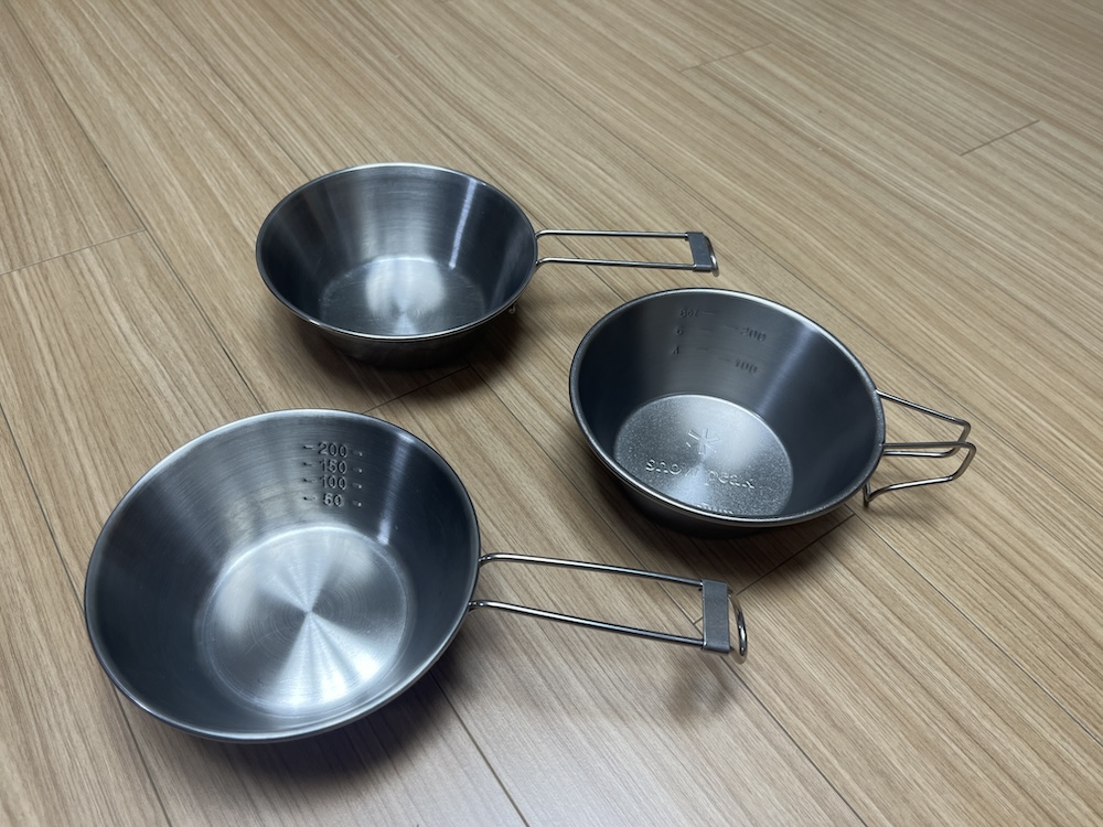 스노우피크 티탄 시에라컵과 스노우피크 스틸 시에라컵(E-103)이 있습니다.