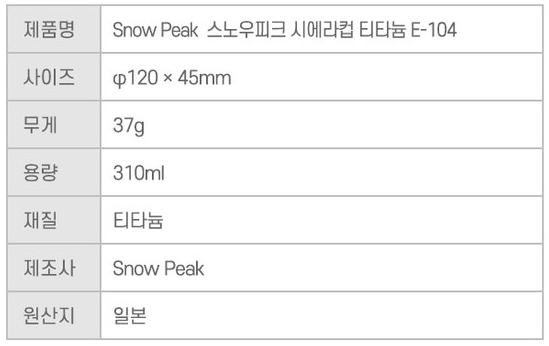 스노우피크 시에라컵 티타늄 E-104