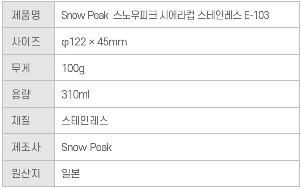 스노우피크 시에라컵 스테인레스 E-103