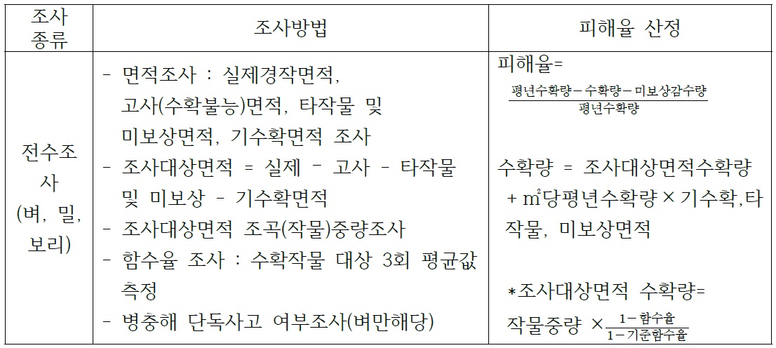 논작물 벼의 각 조사방법과 피해율