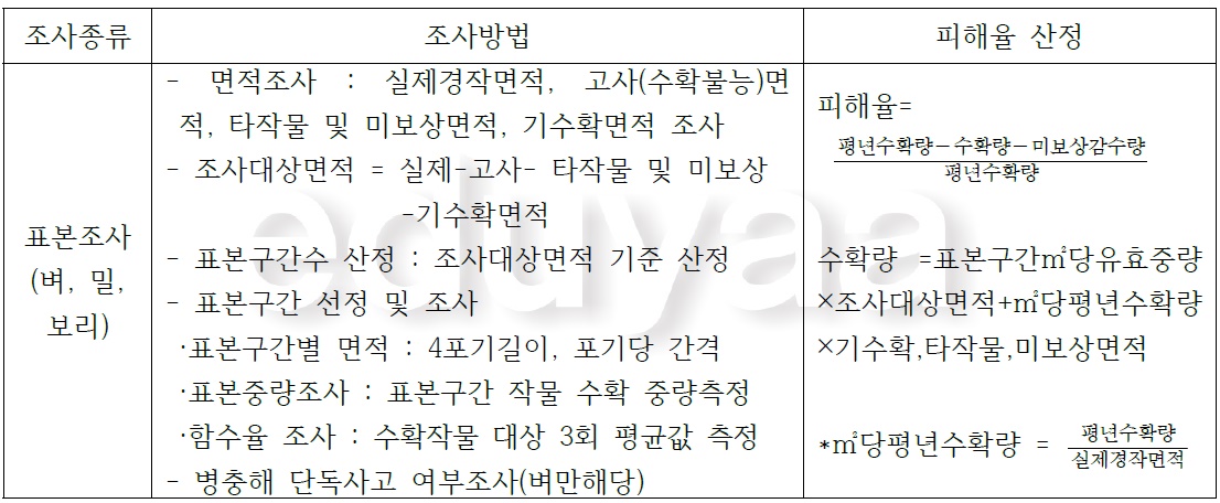 각 조사별로 조사방법과 피해율산정에 대해서 알아보겠습니다.