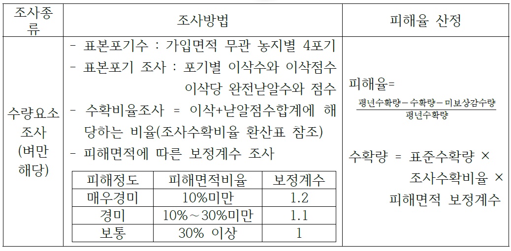 논작물 벼의 각 조사방법과 피해율