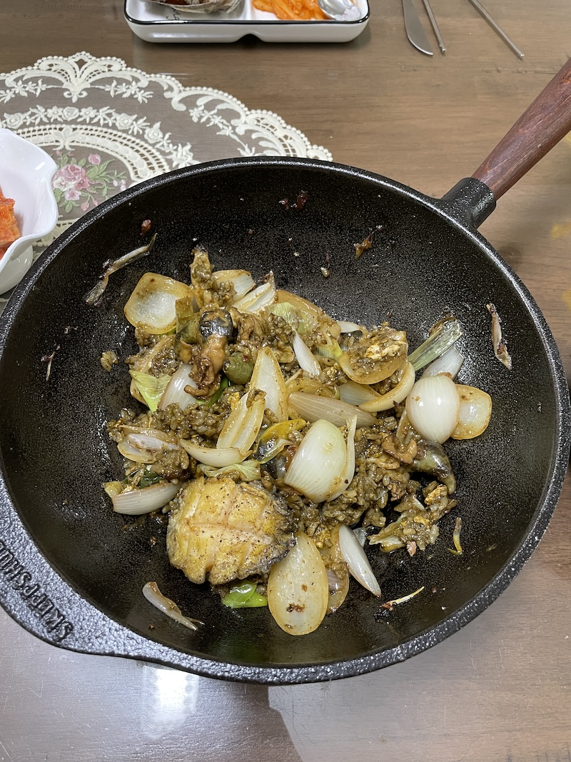 무쇠제품을 하나씩 사용을하며 음식을 시작했다.