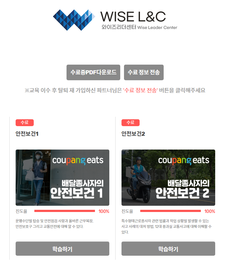 또한 안전 교육 이수를 꼭 하시길 바랍니다.